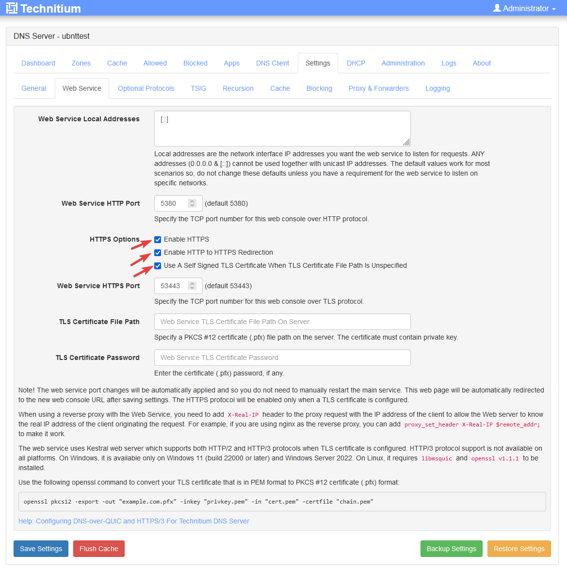 2. After Technitium is finished installing you can access it via https://localhost:5380